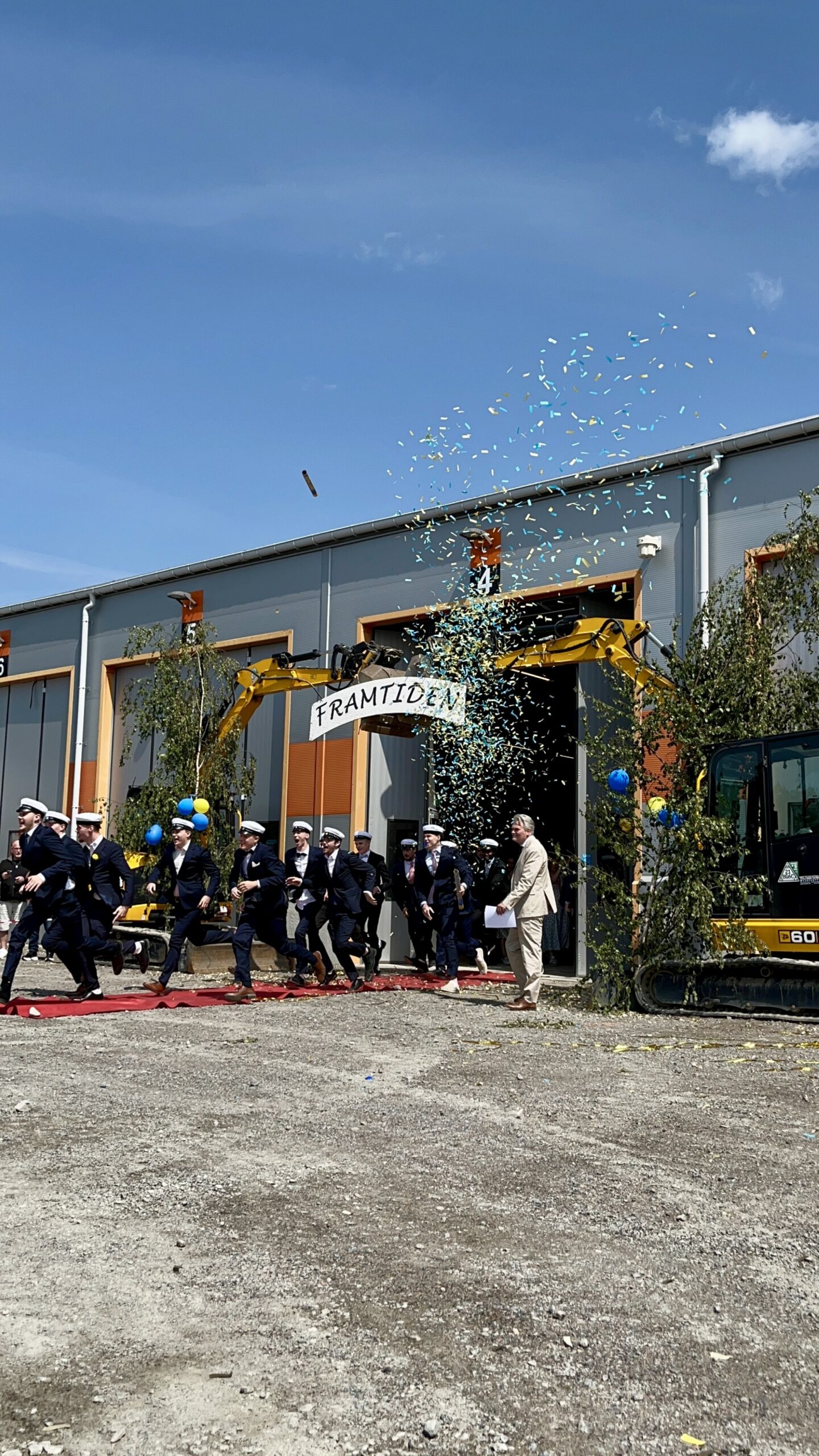 12:30: Utspark genom fordonshallen på skolan ut på körgården där familj, släkt och vänner kan möta och fira studenterna